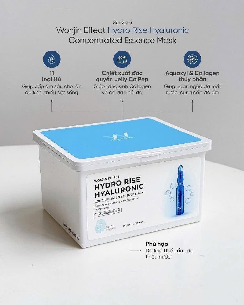 TRẢI NGHIỆM MẶT NẠ WONJIN EFFECT HYDRO RISE HYALURONIC CONCENTRATED ESSENCE MASK