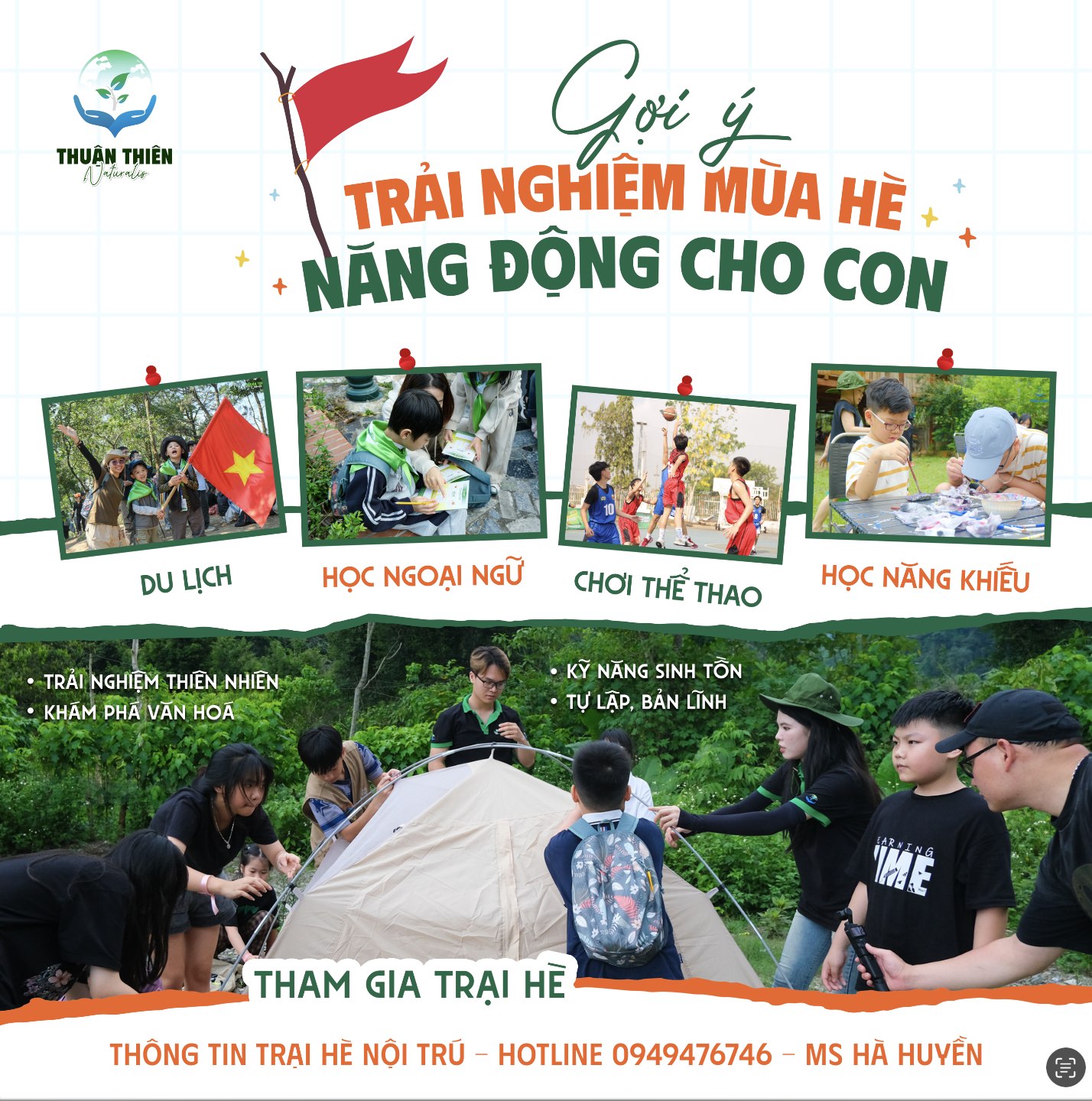 Mùa hè này, thay vì để con “ngâm mình” trong tivi, điện thoại hay game online, cha mẹ có thể “tặng” con một mùa hè khác biệt tại trại hè Thuận Thiên 2026 – nơi con được hòa mình vào thiên nhiên, vui chơi và học hỏi từ những trải nghiệm thực tế tại Xuân Sơn (Phú Thọ) và Đà Bắc (Hoà Bình).