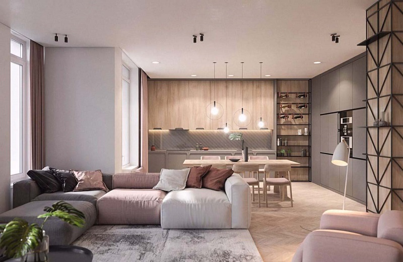 Mềm mại, tinh tế, hiện đại, phòng khách của căn hộ nhỏ đậm chất lãng mạn với sự ấm cúng và tràn ngập ánh sáng. Những điểm nhấn tông màu đen đối lập với khoảng sáng của tông màu be, càng tôn thêm những đường nét hoàn hảo của phòng khách chung cư phong cách Bắc Âu.