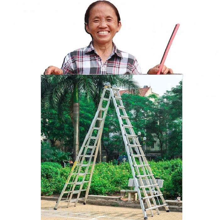 Các cháu ơi dạo này bà xem trên tivi hay thấy các vụ tại nạn lao động do dùng thang nhôm dởm, thang nhôm nhái đó các cháu ạ, các cháu còn muốn xem kênh diu tút của bà thì các cháu nên tiết kiệm tiền mua cái thang như cái thang nhôm Hàn quốc khổng lồ của bà mà dùng cho an toàn các cháu nhé