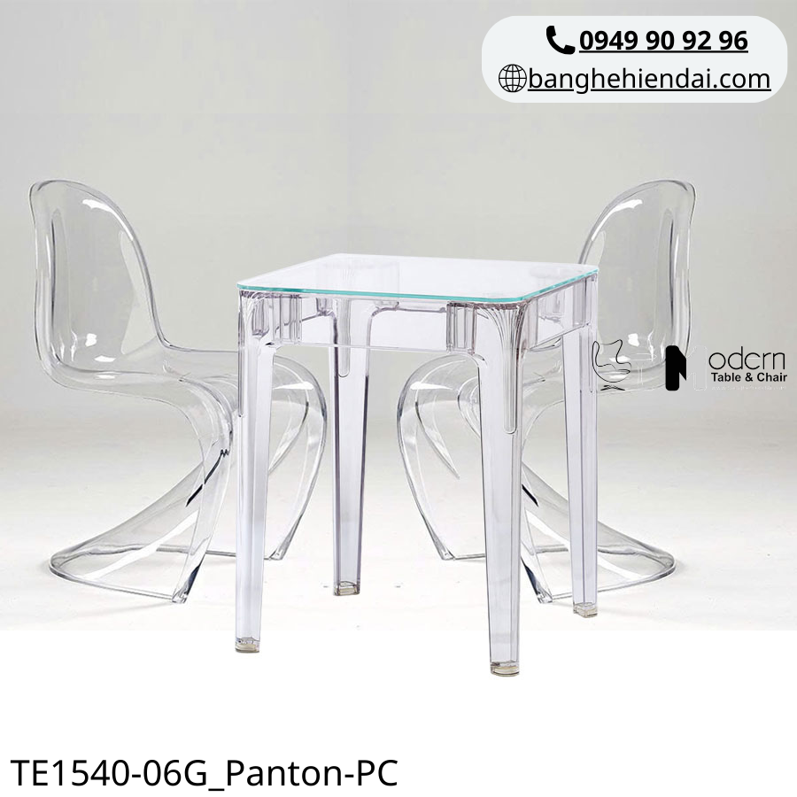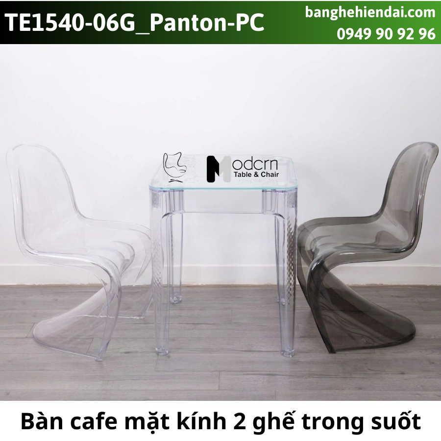 ✨ BỘ BÀN CAFE MẶT KÍNH VUÔNG 2 GHẾ TRONG SUỐT TE1540-06G _ PANTON-PC ✨