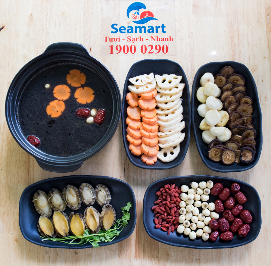Nhiều khách hàng chưa biết chế biến bào ngư làm sao đúng cách và giữ trọng vẹn hương vị và dinh dưỡng. Chính vì vậy, đầu bếp Seamart đã lên món bào ngư tiềm các loại quả, củ sen bổ dưỡng thanh mát phục vụ khách hàng.