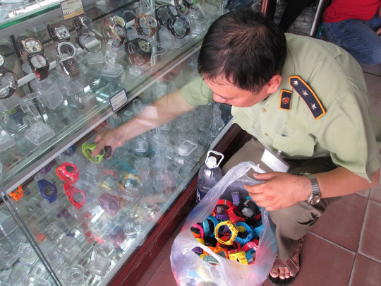 Trong đó, nhiều mặt hàng có dấu hiệu là giả. Số lượng sản phẩm bị tạm giữ lên tới hơn 2.000, như túi xách, mắt kính, đồng hồ... giả các nhãn hiệu nổi tiếng trong và ngoài nước như Casio, Rolex, Omega...