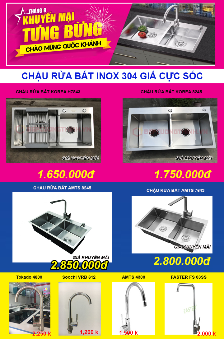 Chào mừng quốc khánh 2-9 cơ hội mua chậu rửa bát Inox giá vô cùng rẻ.