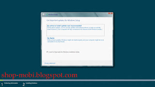 -Chọn Upgrade:nếu bạn muốn nâng cấp trực tiếp từ W7(cài đè lên W7, có thể giữ lại 1 số phần mềm và dữ liệu trong My Documents). Nếu chọn phần này, bạn sẽ không dùng được W7 song song với W8, W7 sẽ lưu tại thư mục với tên Windows.old.