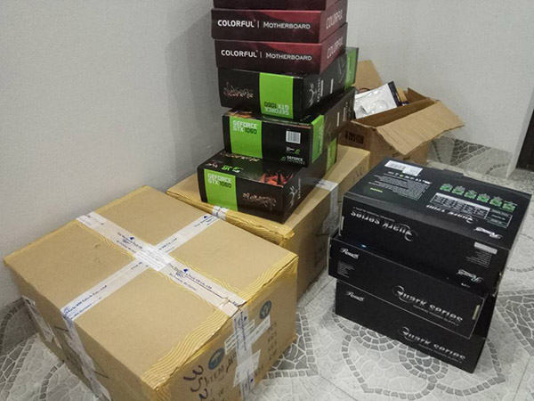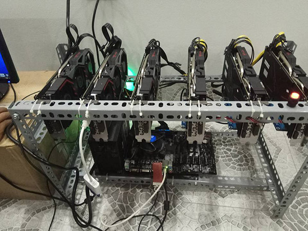 Một máy cày ETH, Zcash, ZEC, XMR... yêu cầu có 6 VGA, 1 nguồn công suất thực, 6 dây Riser USB 006C, CPU, HDD hoặc SDD, khung thép BTC và phần mềm để đào Coin.