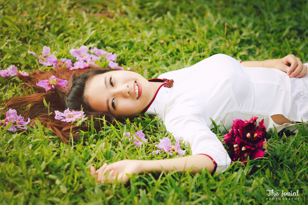 Áo dài kỉ yếu thêu hoa phong lan tại The Jovial Studio