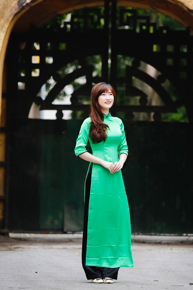 - Đúng như bên trên đã nói, màu xanh lá không kén màu da và độ tuổi và hoàn cảnh xuất hiện, chính bởi vậy dù bạn sử dụng làm áo dài kỷ yếu hay áo dài sự kiện, hội nghị chụp ảnh đều được.