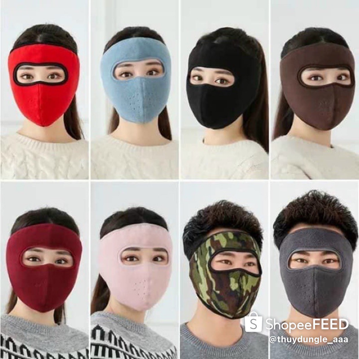 Khẩu trang ninja trùm kín mặt cổ, che tai chống nắng chống gió bụi vải nỉ bất chấp đông lạnh