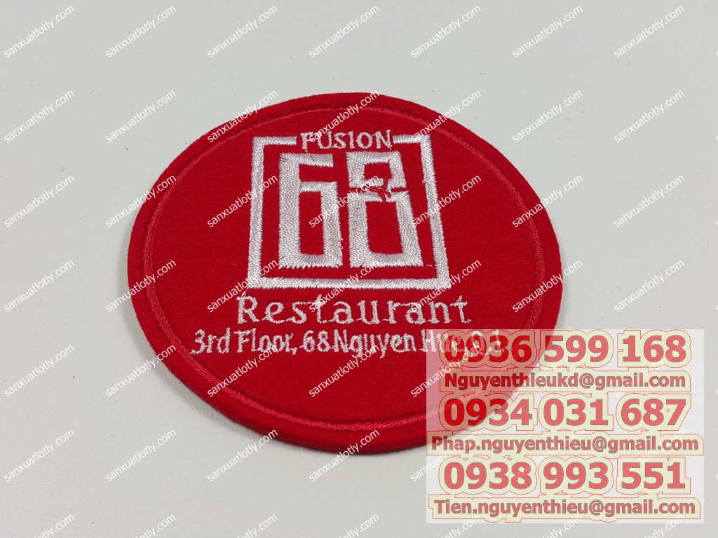 . Thêu logo đẹp, thêu logo đế lót ly vải nỉ nhận diện thương hiệu