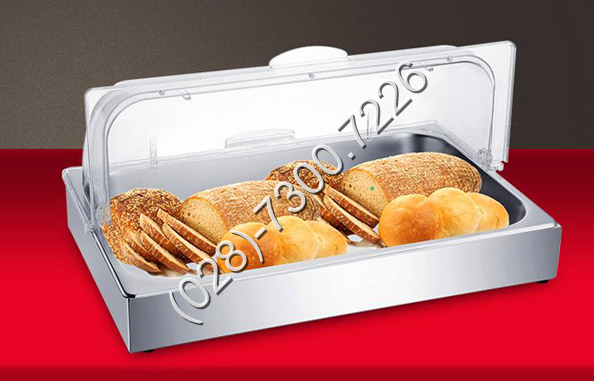 Khay inox tròn trưng bày thức ăn có hâm nóng