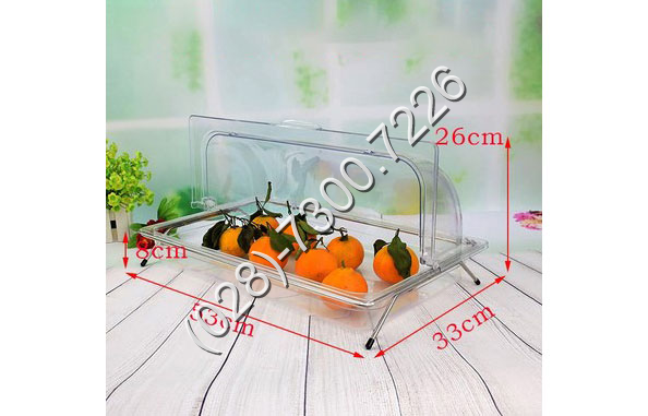 Khay inox trưng bày thức ăn buffet chữ nhật 1 ngăn trưng bày thức ăn lạnh có nắp pc