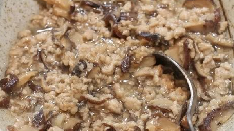 - Trộn nấm hương với thịt xay, dầu vừng, xì dầu, gia vị. Nhân nên cho hơi nhật một chút