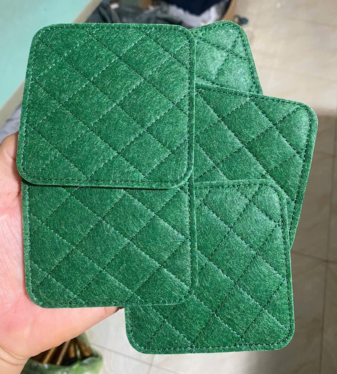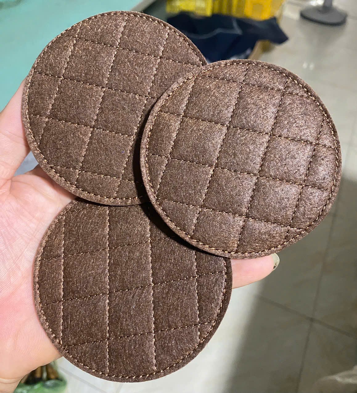 Xưởng nhận làm lót ly vải nỉ cho quán cà phê, nhà hàng, quán ăn, kara… với ưu điểm: