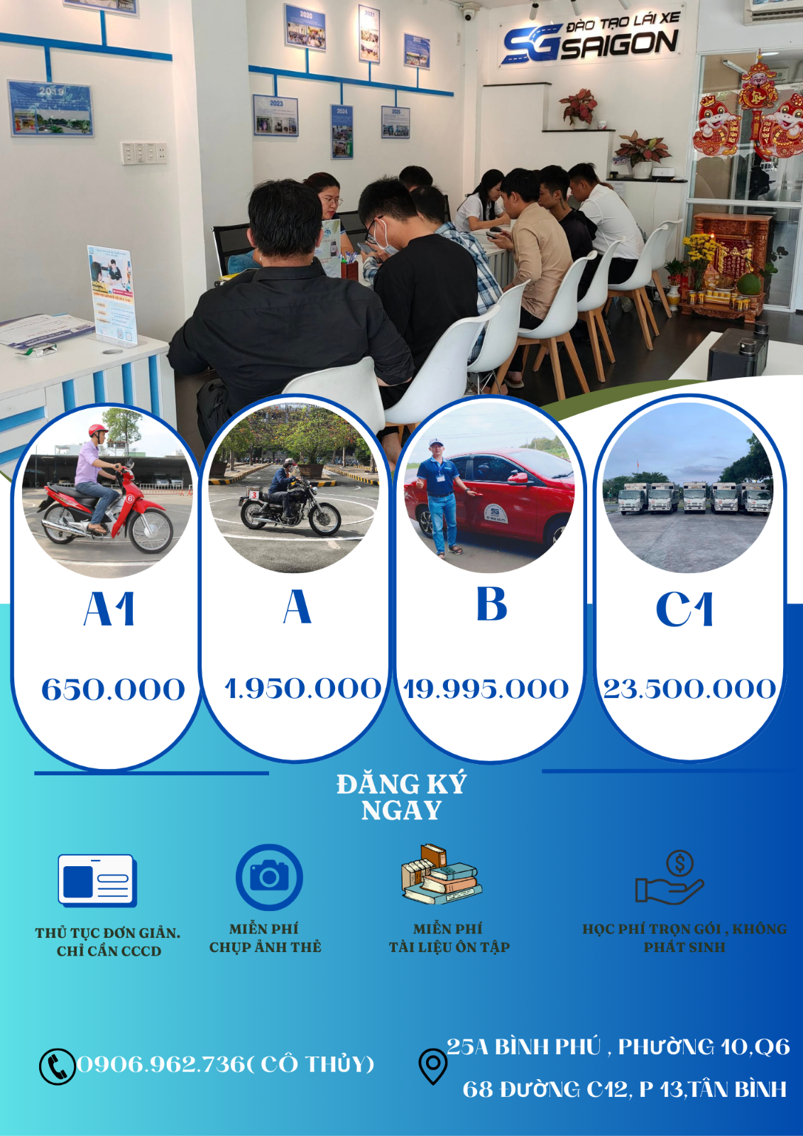 Nhận hồ sơ các hạng lái xe A.A1,B , C1, nâng dấu ,... Học phí trọn gói không phát sinh Thầy giáo tận tâm nhiệt tình Miễn phí chụp ảnh thẻ, app tài liệu ôn tâm Học phí A1 chỉ 650k nhé Liên hệ ngay: 0906.962.736