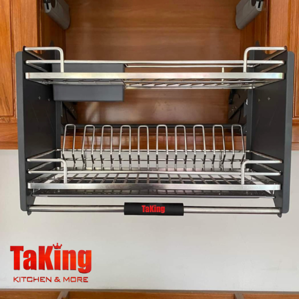 Kệ nâng hạ oval TaKing thường được lắp đặt gần khu vực chậu rửa để thuận tiện cho việc úp bát mỗi khi rửa, phù hợp sử dụng cho mọi không gian bếp.