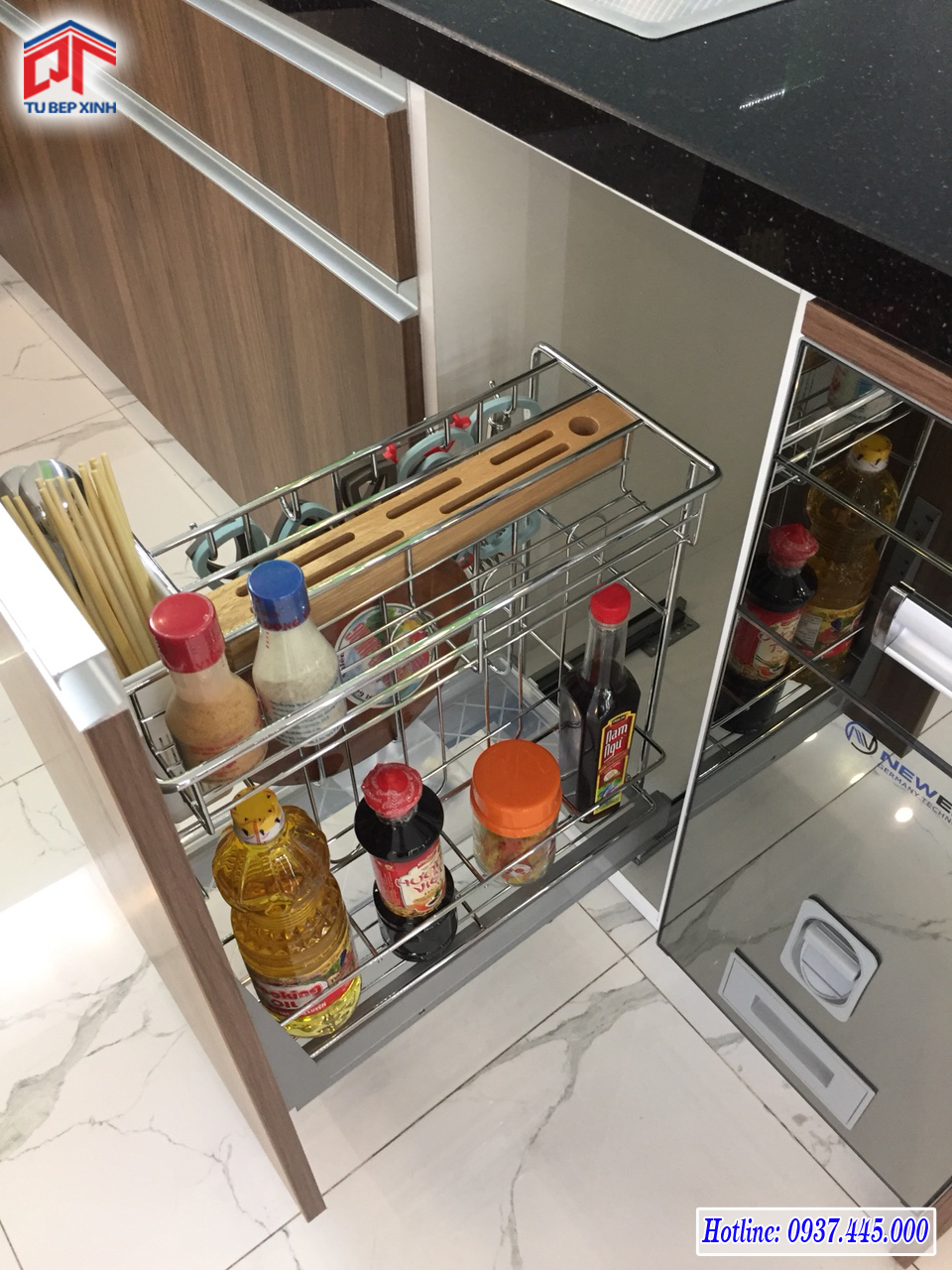 Có thể lắp đặt âm tủ là điểm cộng tuyệt vời cho kệ gia vị này, chúng ta sẽ còn quá khó khăn trong việc vệ sinh kệ vì môi trường trong tủ bếp sẽ rất ít bám bụi. Bên cạnh đó các loại gia vị và dụng cụ làm bếp nhờ vậy cũng tránh được vi khuẩn và các loại côn trùng độc hại, đảm bảo sức khỏe cho các thành viên trong gia đình.