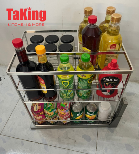 Kệ gia vị TaKing sở hữu thiết kế hiện đại, tinh tế, phù hợp với nhiều phong cách tủ bếp khác nhau. Các ngăn kệ được bố trí khoa học giúp bạn sắp xếp chai lọ, gia vị gọn gàng, dễ lấy khi nấu ăn, tiết kiệm thời gian và công sức.