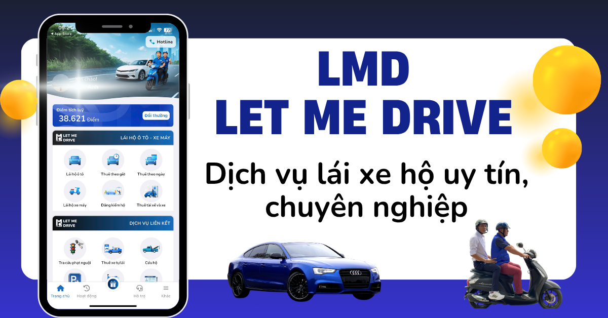 LMD – Let Me Drive là nền tảng đặt tài xế và dịch vụ lái xe hộ đáng tin cậy tại Việt Nam. Bạn chỉ cần vài thao tác là có thể gọi tài xế đến lái chính chiếc xe của mình. Dù vừa kết thúc buổi hẹn, một ngày làm việc bận rộn hay đang trên hành trình xa, LMD luôn đảm bảo bạn được di chuyển nhanh chóng, an toàn và chuyên nghiệp.