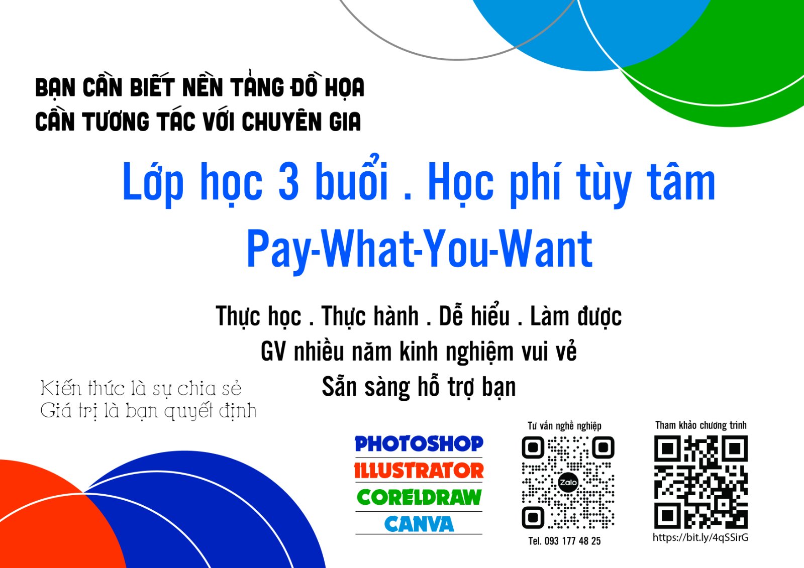 Học phí: Tùy tâm (0đ – 49k – 99k – 199k tùy điều kiện mỗi người).