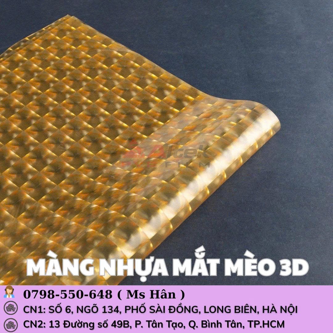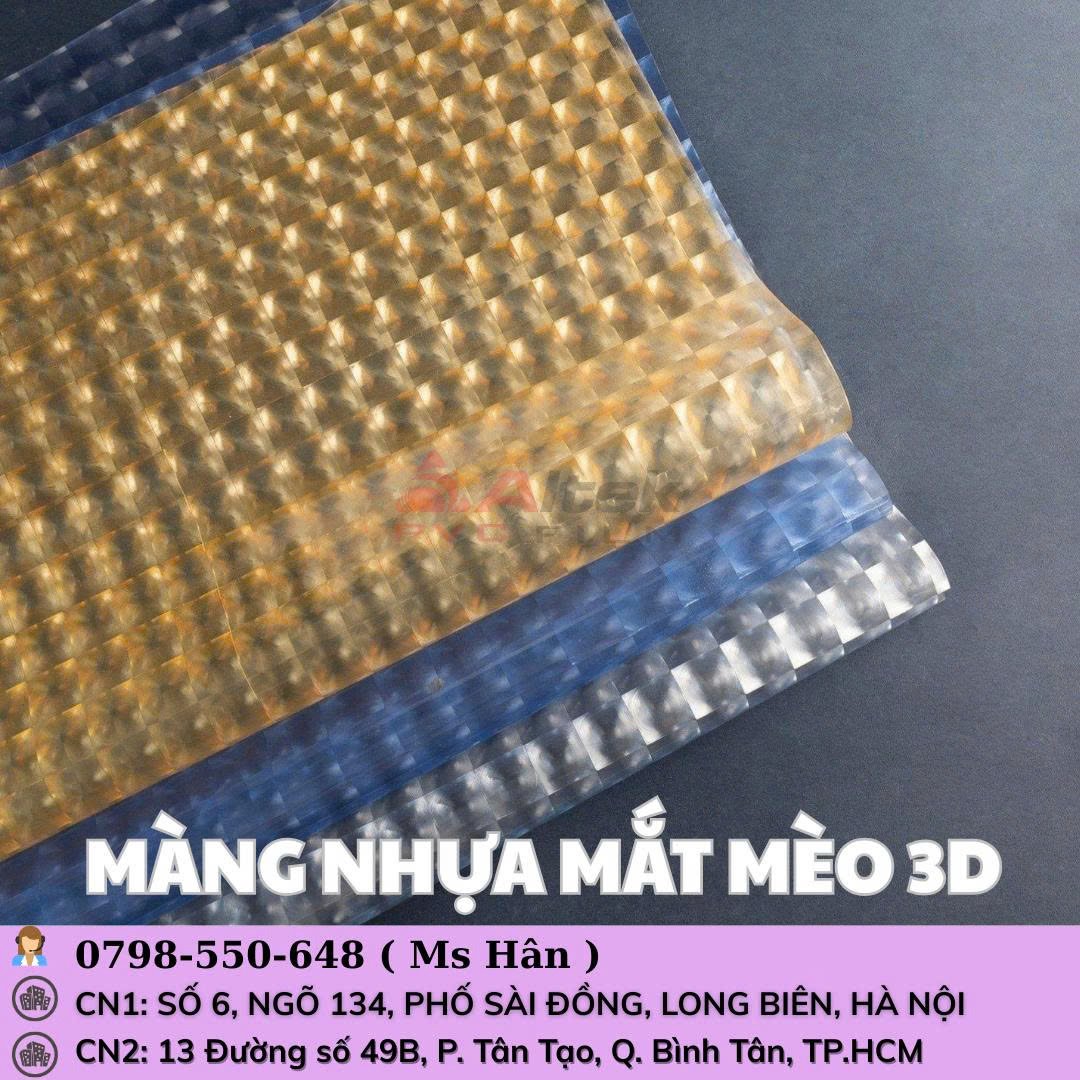 🔹 Màng PVC dẻo mắt mèo là loại màng nhựa đặc biệt, trên bề mặt có họa tiết dạng mắt mèo độc đáo. Không chỉ tạo điểm nhấn thẩm mỹ, màng còn có khả năng chống trầy xước, hạn chế bám bụi và tăng độ bền khi sử dụng.