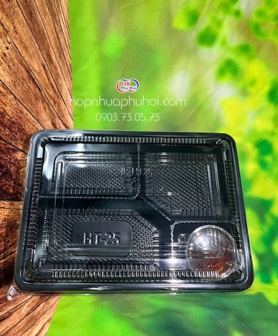 Hộp nhựa đựng cơm 4 ngăn HT25 được nhiều nhà hàng quán ăn tin dùng để sử dụng làm thương hiệu bao bì của mình sản phẩm khá đẹp mắt chiếm được nhiều cảm tình của khách hàng, nhựa PP hâm nóng được lò vi sóng giúp cho món ăn nóng hổi hấp dẫn.
