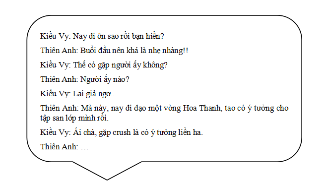 Thiên Anh còn đang mải nhìn thì từ xa bỗng vang lên tiếng một bạn nam: