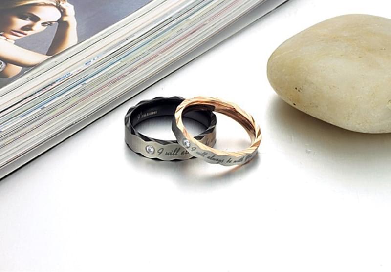 Ý nghĩa của cặp nhẫn đôi đôi titan khắc chữ - i will always be with you này là " anh luôn bên cạnh em, luôn bảo vệ và che trở cho em cùng em đi đến hết cuộc đời này. Anh sẽ cùng em vượt qua mọi khó khăn sóng gió trong cuộc sống luôn bên em và mang lại hạnh phúc cho em. tình yêu chúng mình mãi mãi bên nhau, trọn vẹn và vĩnh cửu...". Cặp nhẫn đôi titan khắc chữ này hết sức lãng mạn và ngọt ngào phải không? Và biết đâu cặp nhẫn này sẽ giúp hai bạn thực hiện được ước mơ nồng thắm đó thì sao.
