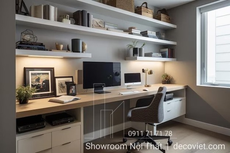 Đối với những người thường xuyên phải mang công việc về nhà hoặc làm những việc tự do thì việc thiết kế thi công phòng làm việc tại nhà đẹp, tiện nghi sẽ mang đến sự sáng tạo và cảm hứng làm việc cao hơn. Phòng làm việc tại nhà ưu tiên sử dụng nội thất tối giản, không cầu kỳ, gam màu trung tính nhằm mang lại sự yên tĩnh cần thiết khi làm việc. Đặc biệt, yếu tố ánh sáng luôn được chú trọng ngay từ những bước ban đầu. Bàn làm việc phải đặt nơi rộng rãi, dễ ngồi và được cung cấp đầy đủ ánh sáng phục vụ cho quá trình làm việc một cách hiệu quả tốt nhất.