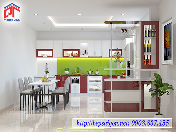 Quầy bar được sử dụng để trang trí, tạo điểm nhấn cho không gian phòng bếp. Chúng mang đến cho không gian phòng bếp thật ấn tượng và hết sức độc đáo. Đó cũng là cảm hứng giúp các thành viên trong gia đình có tinh thần vui vẻ bên nhau hơn.