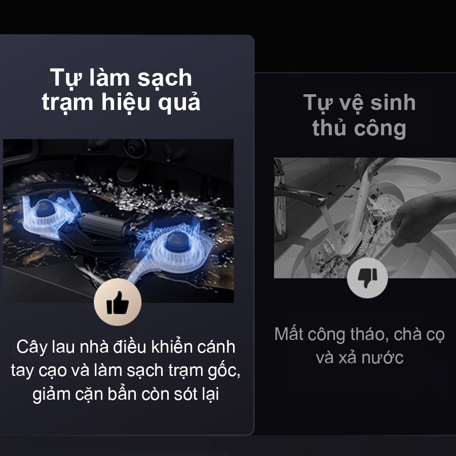 - Tính năng tháo lắp khăn lau tự động tại dock sạc