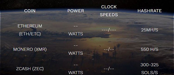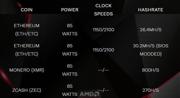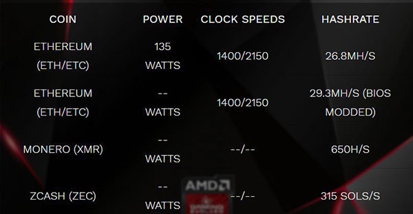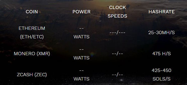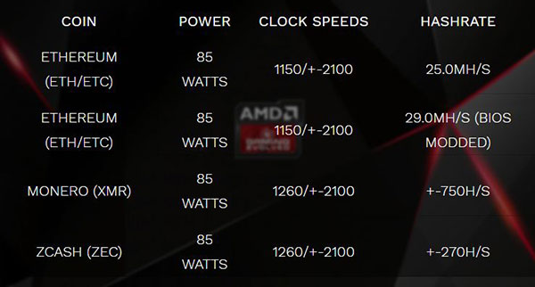 Tốc độ mining của card màn hình RX 480 8GB với đồng ETH là 26.9mh/s, 31.5 khi mod bios, XMR 800h/s và ZEC 270H/s.