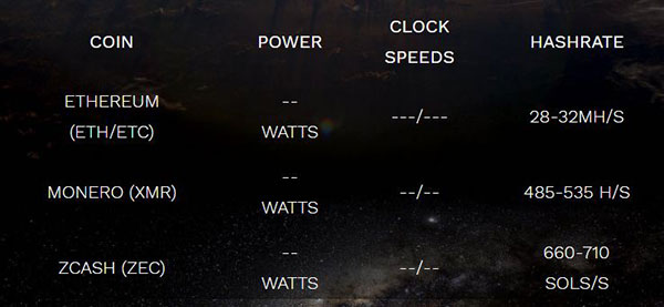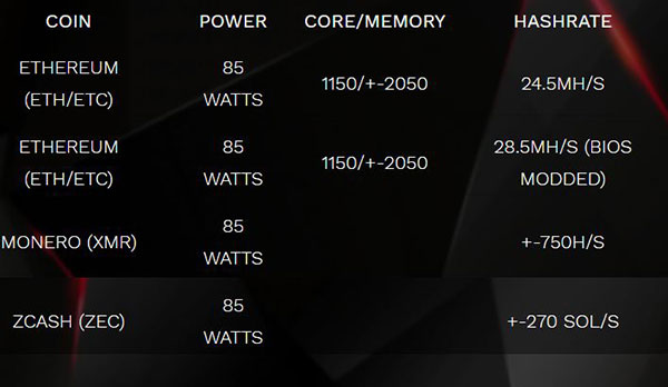 Tốc độ mining của card màn hình RX 480 4GB với đồng ETH là 26.4mh/s, 30.2 mh/s khi mod bios, XMR 800h/s và ZEC 270H/s.