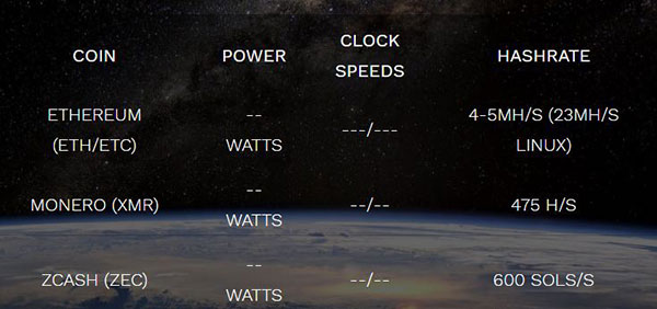 Tốc độ mining của card màn hình GTX 1080 ETH 4-5mh/s (23mh/s Linux), XMR 475h/s, ZEC 600sols/s.