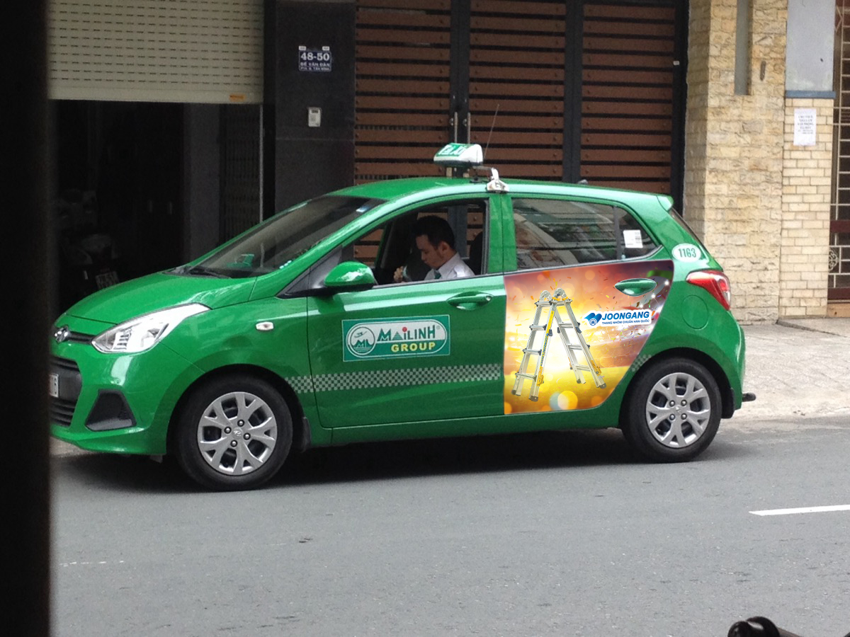 Thang nhôm Joongang Hàn quốc quảng cáo trên xe bus và xe taxi