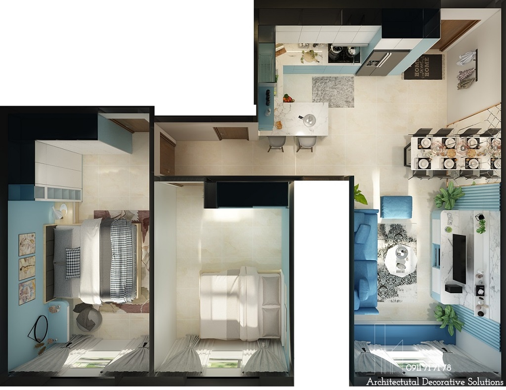 Căn Hộ Nội Thất Xanh Dương Đẹp Thu Hút
