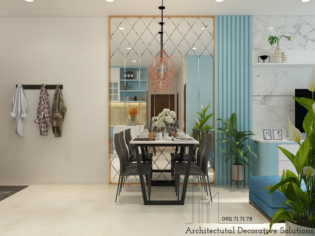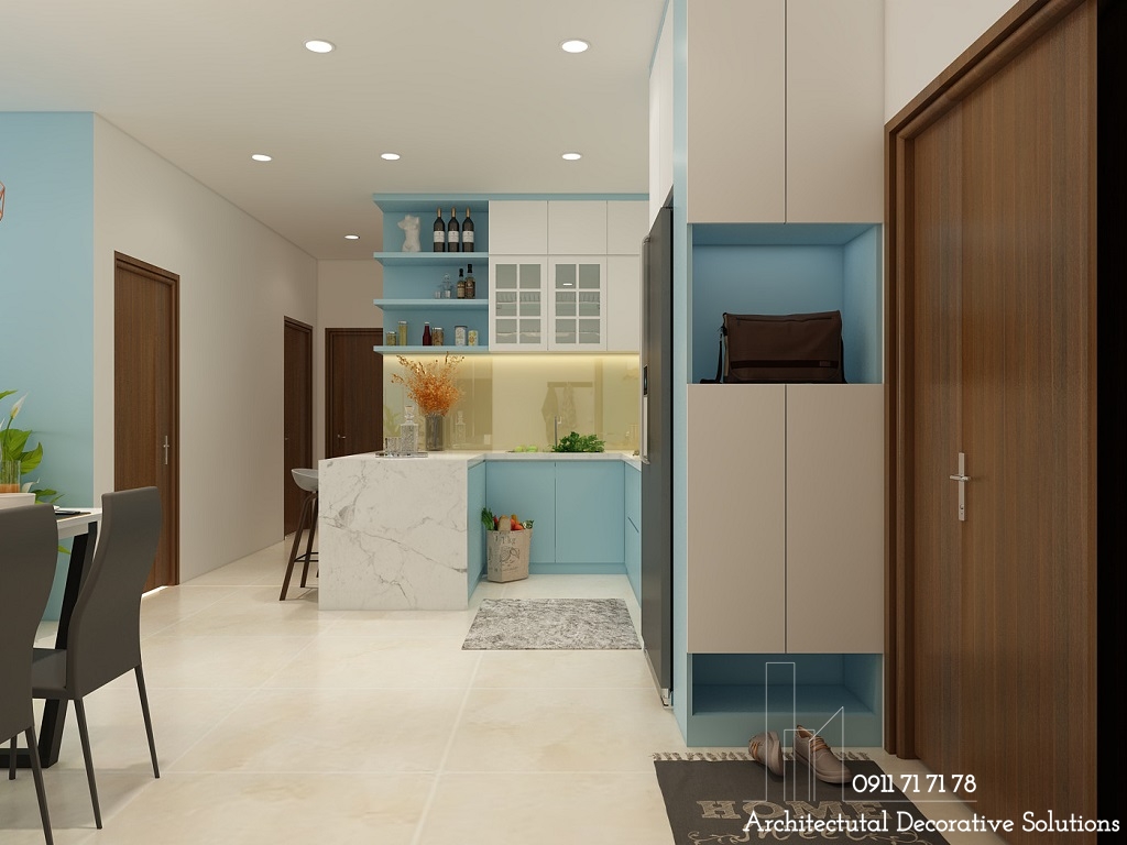 Thiết Kế Nội Thất Căn Hộ Màu Xanh Ấn Tượng Và Thu Hút