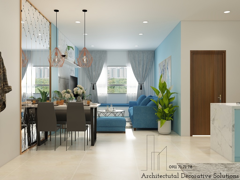 Màu xanh dương là màu khá ấn tượng cho những thiết kế nội thất, vừa cho thấy được vẻ đẹp quyến rũ bí ẩn; vừa tạo cảm giác dễ chịu cho mắt, vừa tôn lên vẻ đẹp của toàn bộ căn nhà. Đây hiện là tông màu đang được ưa chuộng nhất trong nửa đầu 2024. Bạn là người yêu thích màu xanh nhẹ nhàng của bầu trời, màu xanh mạnh mẽ của biển cả. Vậy đã bao giờ bạn mong ước sẽ có một căn hộ màu xanh dương ấn tượng và hiện đại chưa? Là đơn vị thiết kế và thi công nội thất căn hộ chuyên nghiệp, sau đây DecoViet xin gửi đến các bạn một số hình ảnh Thiết Kế Nội Thất Căn Hộ Màu Xanh Ấn Tượng Và Thu Hút, sáng tạo và đầy tính thẩm mỹ.