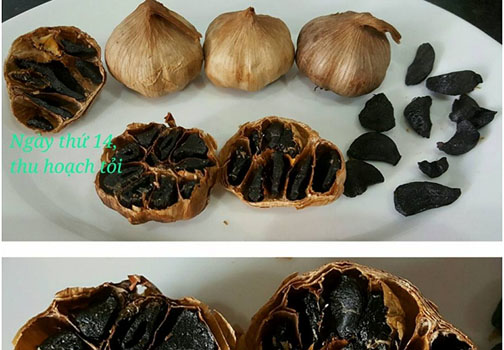 Lúc này chúng ta kiểm tra thành phẩm thôi: tỏi đen thành phẩm sẽ có màu đen, dẻo, mùi thơm dịu, ăn vào sẽ có vị ngọn, hơi chua chua, rất ngon.