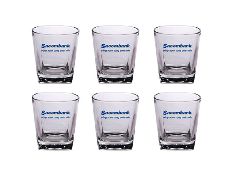 Ly thuỷ tinh giá rẻ in logo ngân hàng Sacombank