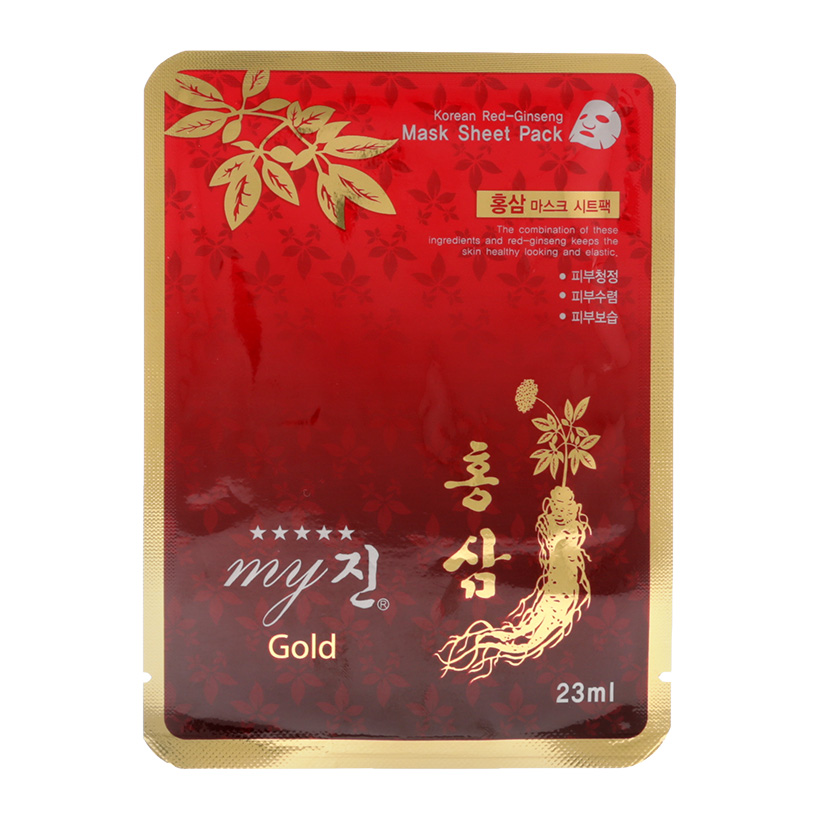 Đắp mặt hồng sâm Korea Red Ginseng Mask Sheet Pack My Gold với tinh chất hồng sâm 6 năm tuổi Hàn Quốc, giúp cho da bạn luôn khỏe mạnh, ngăn ngừa mụn, chống nám và tàn nhang, chống nhăn, chống lão hóa và tác hại của môi trường giúp trẻ hóa tế bào da.