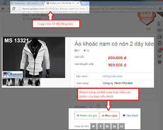 - Ngoài ra, bạn có thể copy trực tiếp đường link của Sản Phẩm đó để đăng bán, lúc này khi có Khách Hàng vào xem thì sẽ vào trực tiếp món hàng và "Mua" ngay lập tức nếu họ thích